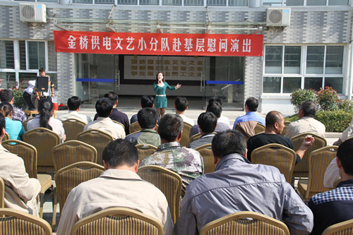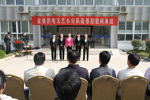 近日,為慶祝建國65周年,進一步踐行黨的群眾路線,豐富基層職工文化生活,公司工會組織文藝小分隊深入供電所等基層單位巡回慰問演出,為一線職工送去精彩紛呈的“文化大餐”,贏得了基層職工群眾一致好評。 在臨時搭建的舞臺上,文藝小分隊自編自演的的歌舞、相聲、詩朗誦、器樂彈唱等豐富多彩的節(jié)目,貼近基層,貼近生活,謳歌金橋供電十年成就,展示金橋供電職工風(fēng)采,贏得了現(xiàn)場觀眾陣陣掌聲。中間還穿插了擊鼓傳花觀眾互動節(jié)目,基層職工踴躍參與,氣氛活躍。最后,演出在會場全體人員齊唱《歌唱祖國》中圓滿落下帷幕。 公司自成立以來,一直注重企業(yè)文化建設(shè),利用多種形式活躍基層文化生活,滿足員工多層次、多角度的精神需求。不僅加強基層單位“職工小家”建設(shè),建立了“職工書屋”、職工活動室、乒乓球室、羽毛球活動場地等基礎(chǔ)設(shè)施,還舉辦了職工運動會、籃球賽和文藝演出等活動。不僅發(fā)揮傳統(tǒng)職工文化活動的優(yōu)勢,而且還創(chuàng)新具有時代特色文化活動的形式,不斷增強員工的凝聚力和向心力。通過本次深入基層慰問演出,不僅為戰(zhàn)斗在一線的基層職工獻上一份精神“大餐”,同時也展示了金橋供電的良好作風(fēng)和企業(yè)形象。(趙艷)