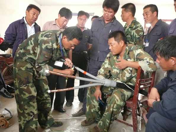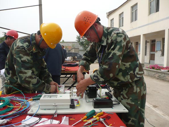 為了檢驗一線員工的技術水平和實際操作能力,進一步提高廣大員工立足崗位快速成才的積極性,營造 “比、學、趕、超”的學習氛圍,我公司于6月29日在臺南供電所舉辦了專業(yè)技術比武活動。這次技術比武活動分為面試考問、實際操作二部分。來自5個供電所的30名職工進行了同場競技。比武活動項目有線路作業(yè)、配電安裝、變電業(yè)務操作等。線路作業(yè)賽場上,參賽隊員們頂著烈日,比上桿速度,比操作規(guī)范、比制作工藝。配電柜安裝賽場上,隊員們聚精會神,揮汗如雨,繪圖、打眼、組裝、接線……。變電業(yè)務操作現(xiàn)場,各代表隊的選手認真揣摩,填寫設備檢修申請單、任務票、操作票,密切配合、嫻熟操作開關設備。