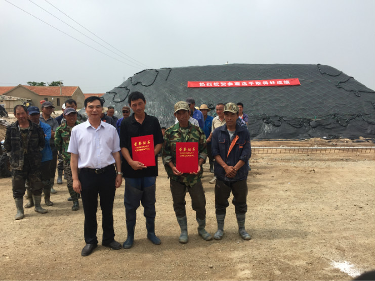 比賽開始前,生產(chǎn)服務(wù)公司經(jīng)理王緒前首先就天溝建設(shè)要求、評(píng)分標(biāo)準(zhǔn)等事項(xiàng)進(jìn)行了現(xiàn)場(chǎng)說明。7點(diǎn)20分,隨著裁判員的一聲令下,比賽正式開始。參賽選手們按照賽前抓鬮序號(hào),迅速投入到比賽中。賽場(chǎng)上,每一組選手都分工明確,澆水、翻泥、踩實(shí)、做埝、整平一氣呵成,大家都表現(xiàn)的極為熟練,充分展示了參賽選手扎實(shí)的基本功。比賽中,三位裁判在比賽場(chǎng)地來回巡查,認(rèn)真記錄每一組參賽選手的勞動(dòng)過程,力求做到公平、公正。9點(diǎn)20分,隨著最后一組選手的工作完成,比賽正式結(jié)束。隨即,三位裁判又根據(jù)比賽過程中的記錄情況結(jié)合最終工程質(zhì)量對(duì)每一參賽小組進(jìn)行綜合評(píng)分。最終,來自埒南制鹽分公司的章保衛(wèi)、高明成榮獲比賽第一名;江海兵、張春連以及尹步松、汪禮兵兩組選手榮獲第二名;新河制鹽分公司朱明、戴繼明,郁雷敏、李正軍,楊春旭、史春海三組選手榮獲第三名。