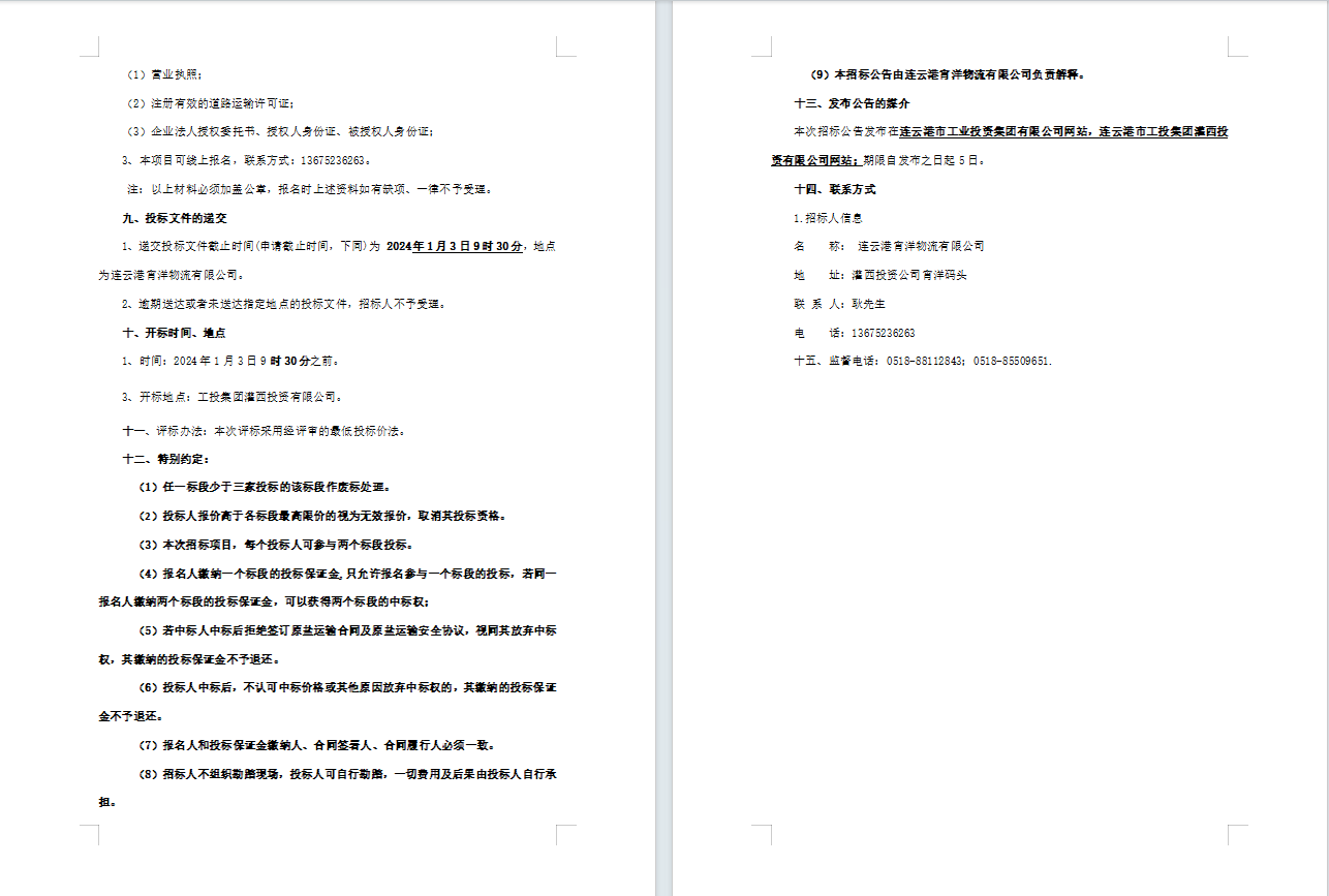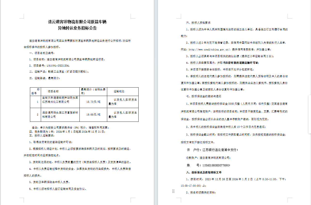 連云港宵洋物流有限公司原鹽車輛異地轉(zhuǎn)運業(yè)務(wù)招標(biāo)公告