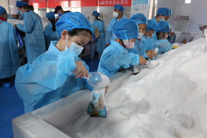 小朋友們首先參觀了包裝鹽車間生產(chǎn)線,對制鹽過程有了直觀的認(rèn)識,接著來到雪花鹽車間體驗手工包裝,提升參與感、獲得感。此次參觀體驗活動,讓小朋友近距離感受家鄉(xiāng)的淮鹽魅力,很好的傳承了淮鹽文化。我公司作為省級文明單位,近年來,積極履行社會責(zé)任,多次與灌南縣尹蕩村、連云區(qū)大竹園村等單位開展文明共建,爭做文明使者,彰顯國企擔(dān)當(dāng)。(金宣)