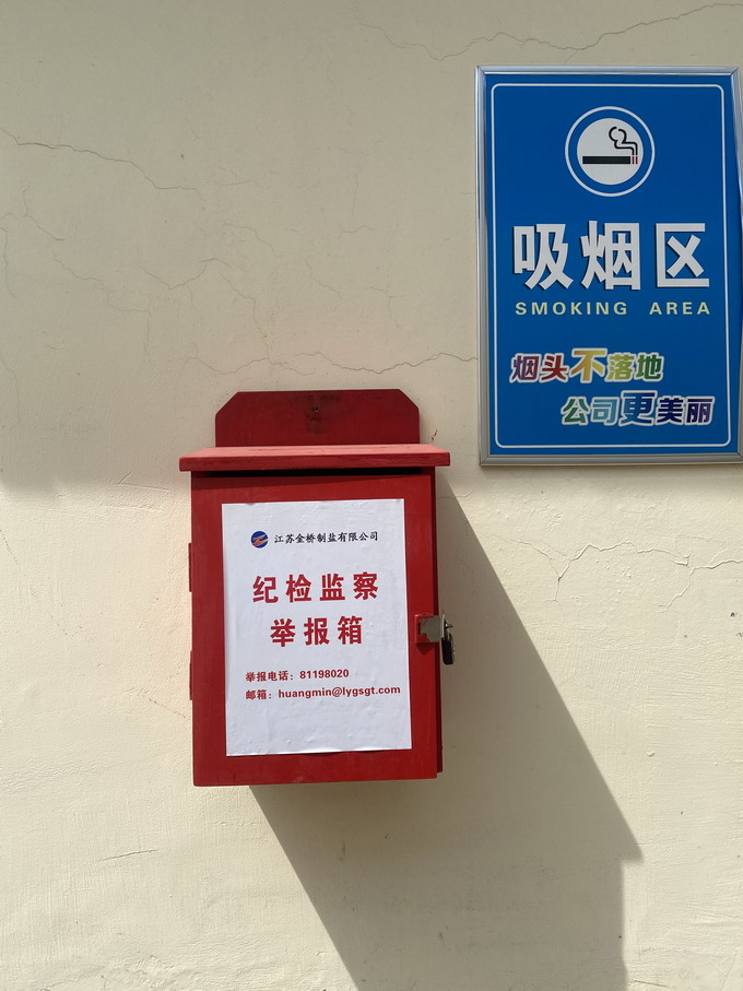 一、紀(jì)檢監(jiān)察舉報箱,設(shè)置在配送中心吸煙區(qū)(非視頻監(jiān)控范圍)。