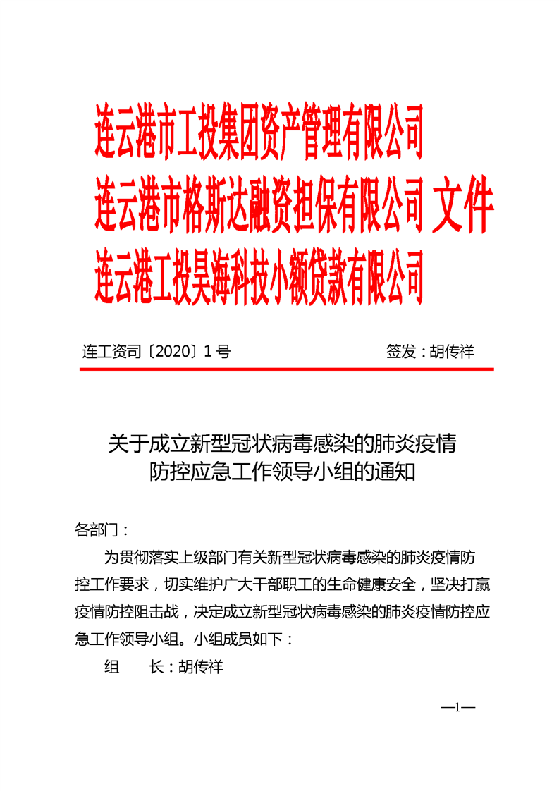 關(guān)于成立新型冠狀病毒感染的肺炎疫情防控應(yīng)急工作領(lǐng)導小組的通知
