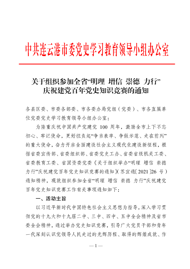 關(guān)于組織參加全省“明理 增信 崇德 力行” 慶祝建黨百年黨史知識競賽的通知