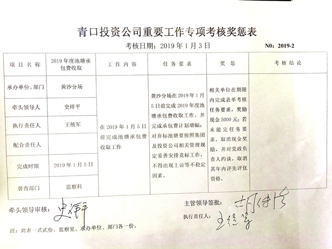 【表單考核】青口投資公司重要工作專項考核獎懲表