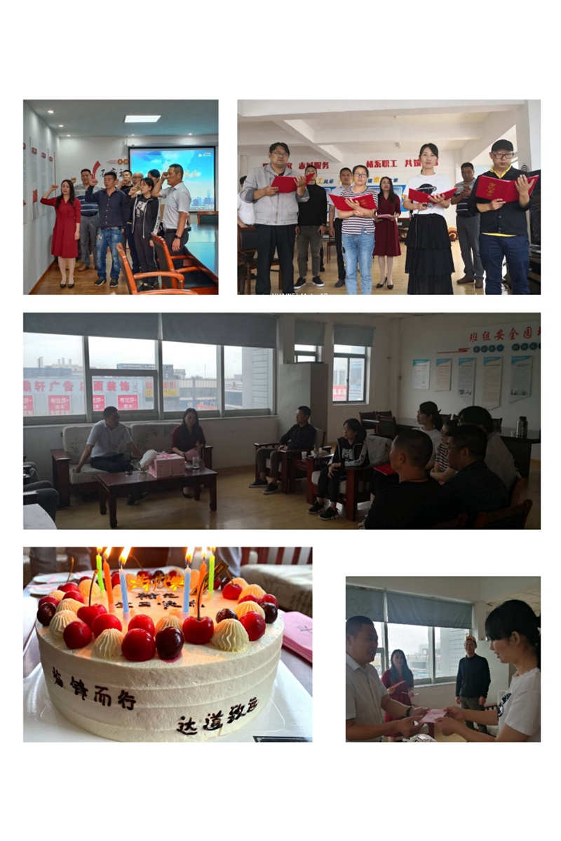 書記致辭。為黨員同志送上暖心祝福話語,向職工群眾提出爭(zhēng)先奮進(jìn)希冀,替臨達(dá)公司樹立更進(jìn)一步目標(biāo)。重溫誓詞。進(jìn)一步增強(qiáng)黨性,牢記黨的宗旨,恪守黨的紀(jì)律,堅(jiān)定理想信念,充分發(fā)揮先鋒模范作用。贈(zèng)送賀卡。書記親手為黨員同志們制作賀卡、寫下寄語,送到黨員同志們的手中。集體誦讀。全體職工高聲朗誦了詩(shī)詞《我的祖國(guó)》,激發(fā)愛國(guó)熱情,陶冶愛國(guó)情操。活動(dòng)最后,公司工會(huì)為職工精心準(zhǔn)備了豐盛的生日餐,讓職工深深體會(huì)到來自“娘家人”的溫暖。
