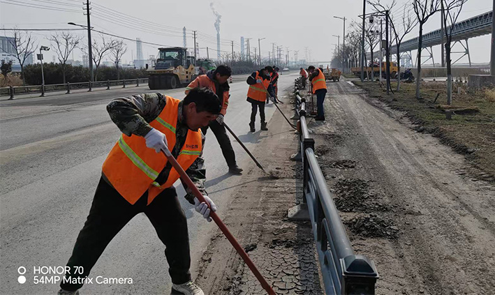 315日,該分公司近15余名黨員突擊隊(duì)員,在黨支部號(hào)召下,無(wú)視春光照曬、三人一組、兩個(gè)一對(duì)、揮動(dòng)手中鐵銑,無(wú)懼泥土揚(yáng)塵四起,清除蘇海路,港前卡口護(hù)欄下車(chē)輛拋灑泥土2000多米長(zhǎng),人工清掃護(hù)欄內(nèi)石子30多處,車(chē)輛轉(zhuǎn)運(yùn)20多車(chē)。黨員陳小軍、陳海彬等同志盡管手磨破了,仍然堅(jiān)守道路最前沿,經(jīng)過(guò)30余名隊(duì)員兩天持續(xù)奮戰(zhàn),整潔靚麗的路面再次展現(xiàn)石化園區(qū)。