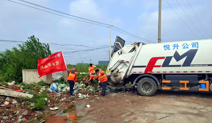 ? ? ? ?8月22日上午,室外熱浪滾滾,橙色工作服在強(qiáng)烈陽(yáng)光照耀下顯得格外引人注目。環(huán)衛(wèi)分公司黨員突擊隊(duì)第一時(shí)間加入到環(huán)境衛(wèi)生“治理”中。活動(dòng)中,隊(duì)員們沖鋒在前,不怕臟、不怕累,及時(shí)對(duì)轄區(qū)各類(lèi)生活垃圾進(jìn)行清理。在轉(zhuǎn)運(yùn)各類(lèi)垃圾過(guò)程中,該分公司管理人員身先士卒,積極與大家?jiàn)^戰(zhàn)在一起,經(jīng)過(guò)4個(gè)小時(shí)的連續(xù)作戰(zhàn),共清理垃圾點(diǎn)4處,清運(yùn)垃圾約7余噸。