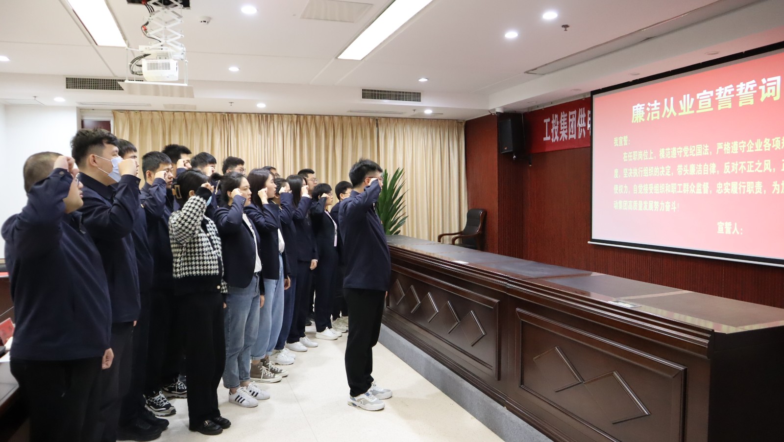 會上,九零后年輕管理人員參加廉潔從業(yè)宣誓并簽訂個(gè)人廉潔承諾書。(王雨)