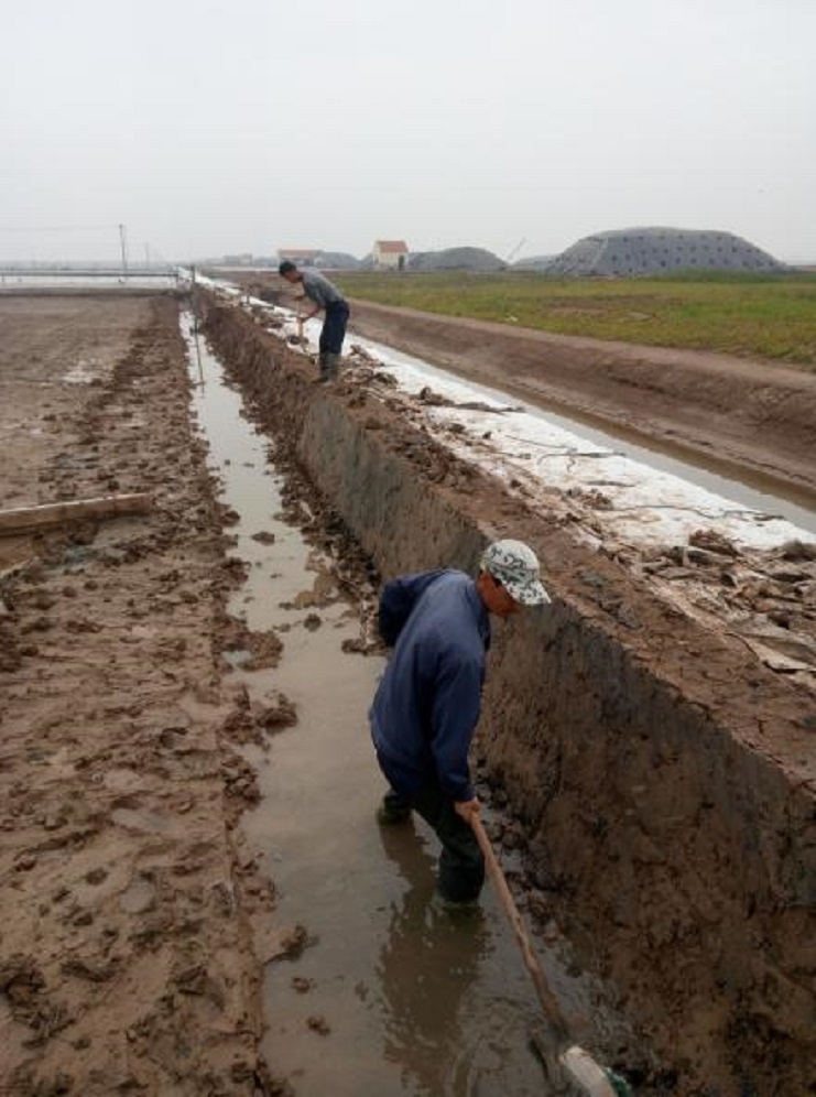 根據(jù)公司生產(chǎn)部門統(tǒng)一要求,在每個生產(chǎn)班組新灌一塊結(jié)晶池,埒南制鹽分公司精心布署,細化安排,嚴(yán)控時間節(jié)點,抓頭、抓早、抓緊,對生產(chǎn)班組新上的格塊堅持做到現(xiàn)場指導(dǎo),跟蹤督察,不符合灌池質(zhì)量標(biāo)準(zhǔn)的堅決不準(zhǔn)上馬。(圖為職工在修整結(jié)晶池堰)莊忠明