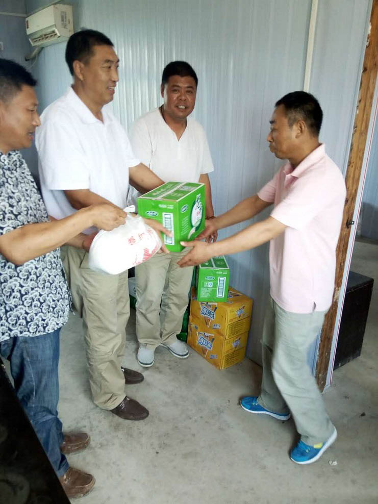 由于近日連續(xù)高溫,西旺水產(chǎn)公司認(rèn)真做好防暑降溫工作。一是及時調(diào)整池塘值班點上的人員作息時間,避開高溫時段,備好了兩套防暑藥物盒;二是加強對養(yǎng)殖戶夏季安全生產(chǎn)、防暑預(yù)防、中暑急救等知識的宣傳;三是開展“送清涼”工作,發(fā)放防暑降溫費、購買防暑物品送到一線員工手里,表示慰問。圖為到西旺公司領(lǐng)導(dǎo)到一線為員工送上防暑物品。(西旺工會)