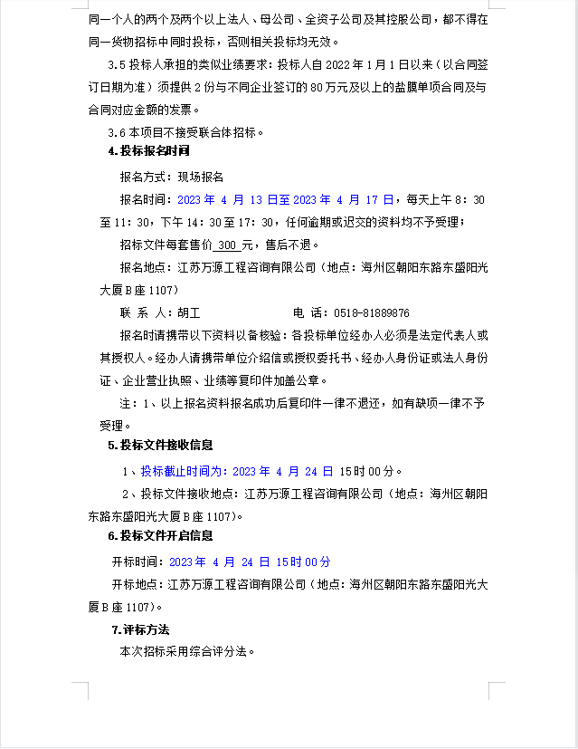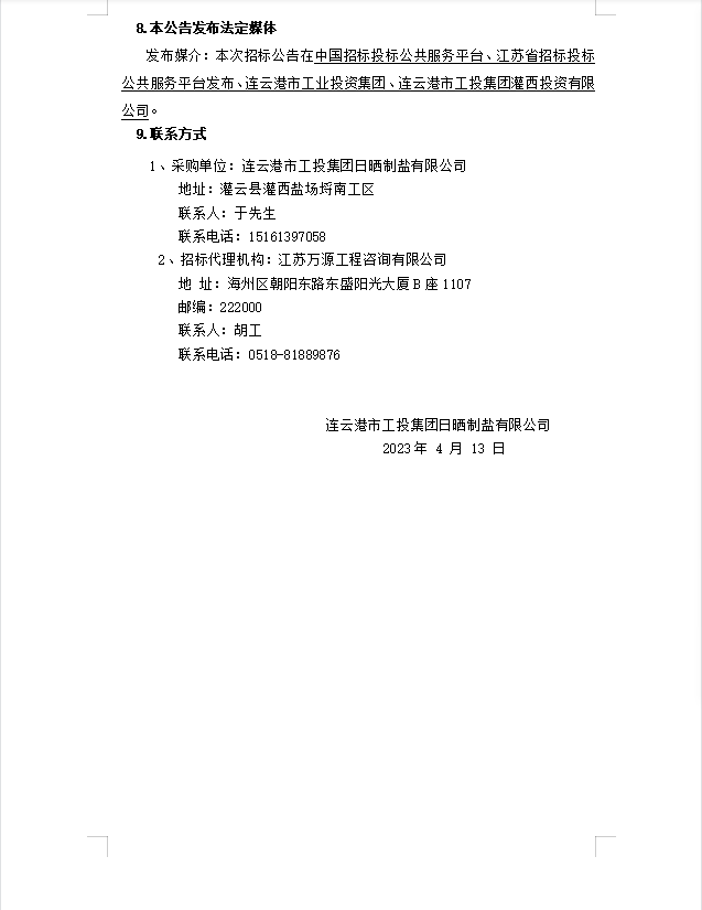 連云港市工投集團(tuán)日曬制鹽有限公司鹽膜招標(biāo)公告(二次)
