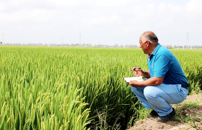 2013年,趙華兵種植大新農(nóng)場(chǎng)520畝水稻田,這是在鹽田里種植水稻,實(shí)行“以種代改”,這是他投身公司水稻自種自營(yíng)模式的第一年。為了仔細(xì)照看咸土地上的“鹽田寶貝”,他日夜穿梭在田間地頭。要想種好水稻,沒(méi)有巧勁,關(guān)鍵是要舍得跑,有不怕吃苦、敢于吃苦奉獻(xiàn)的精神。趙華兵育秧蹲點(diǎn)、走田頭、查病蟲(chóng),經(jīng)常是風(fēng)天一身土,雨天一身泥。