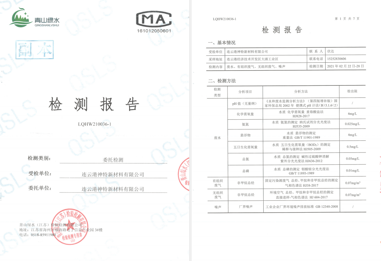 神特公司檢測報(bào)告公示