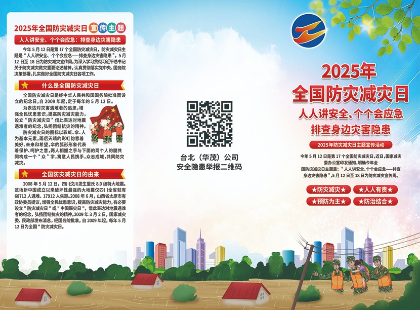 為進(jìn)一步提升防災(zāi)減災(zāi)意識(shí)和應(yīng)急避險(xiǎn)自救能力,筑牢安全防線,5月12日下午,臺(tái)北(華茂)公司防災(zāi)減災(zāi)宣傳周活動(dòng)啟動(dòng)儀式在環(huán)保裝備產(chǎn)業(yè)園五樓會(huì)議室舉辦。各基層單位分管安全負(fù)責(zé)人、現(xiàn)場(chǎng)安全員、班組長及安環(huán)部人員參加活動(dòng)。
