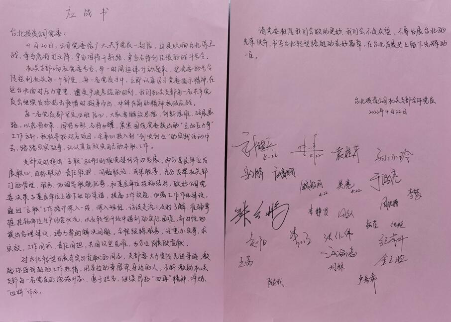 【給黨委回封信】機(jī)關(guān)全體黨員簽名應(yīng)戰(zhàn)書(shū)