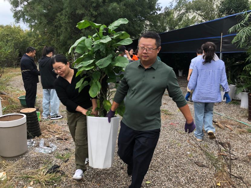 近日氣溫持續(xù)降低,為進一步發(fā)揮機關人員的團隊合作精神與責任擔當意識,切實保障不耐寒綠植盆栽順利越冬。機關黨支部聯(lián)合益豐分公司黨支部在盆景園內(nèi)開展“突擊勞動顯擔當 共為綠植搬新家”主題黨日活動。