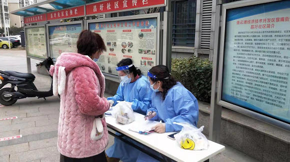 “我白天配合‘大白’做核酸信息采集工作,晚上要把信息及時錄入電腦,連軸轉,連掛兩天吊針。昌圩社區(qū)志愿服務截止到今天配合“大白”完成五次核酸檢測工作,第一天核酸檢測1070人,從中午1點到7點多,站了6、7個小時,雖然很累但我很自豪!因為我是共產黨員!”