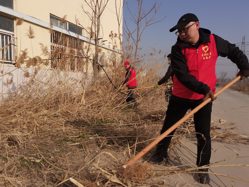 ? ? ? ? 3月4日,按照活動統(tǒng)一安排,志愿者們紛紛抵達各自點位開展統(tǒng)一活動,本次活動主要是清理公司主次干道兩邊的雜草以及各種彩色垃圾?;顒又校碇t色馬甲志愿者分工協(xié)作,首先由男同志們對周邊的蘆葦、鹽薅進行地毯式收割,大家揮動著鐮刀、鐵锨,干的十分起勁,顧不得漫天飛舞的蘆葦花和灰塵。女同志們負責用釘耙將割下的雜草以及死角里的彩色垃圾,摟到一起便于集中清理。在勞動過程中大家互相幫助、互相合作,很好的展現(xiàn)了集體的團結協(xié)作精神,有的同志手不小心被木板上的釘子劃傷了,擦干凈血接著干。經過2個小時的清理,主次干道煥然一新。
